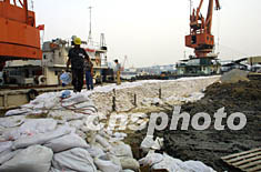 傍晚五点半左右,这里的武警官兵开始又一轮搬运沙袋,在临时沙堤内侧再筑起一道防线,以加固临时沙堤。现场人员称,目前有关施工人员和武警官兵都在与潮汐抢时间,要在黄浦江又一次涨潮之前,完成堤岸加固,以控制险情进一步发展。