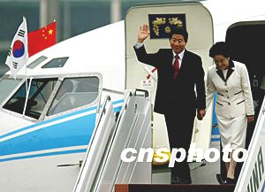 中新社北京七月七日电 应中国国家主席胡锦涛的邀请,韩国总统卢武铉今天上午抵达北京,开始对中国进行为期四天的国事访问。