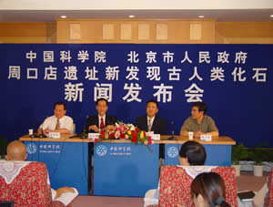 中科院古脊椎动物与古人类研究所所长朱敏介绍说,北京市周口店镇田园林场工作人员二00一年在寻找水源过程中,在周口店遗址以南约五公里处半山腰间的田园洞内发现一些动物化石,该所其后派出科研人员前往出土化石的洞穴考察。二00二年底,周口店古人类学研究中心向国家文物局提出正式发掘申请,于今年五月获得发掘执照。