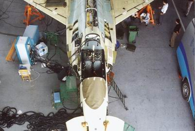 要想一睹“超七”的真颜可不是一件简单的事:进入成飞试飞站之前,工作人员就提醒记者种种注意事项;通过武警层层把关的大门后,试飞场左侧的一机库门前又见到两名武警持枪而立……走进机库,“这就是‘超七’试飞站。”随行的工作人员轻声告诉记者。