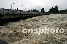 七月十一日凌晨,为了减轻淮河连日降雨给淮河干堤带来的巨大防洪压力,安徽阜阳王家坝进水闸继七月三日后再度开启。中新社记者:盛佳鹏