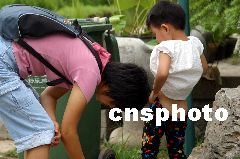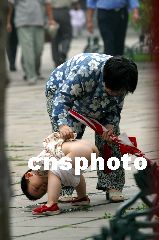 在非典肆虐时,山东济南市民对随地吐痰、随地大小便、当众挖鼻孔、打喷嚏等陋习的认识空前深刻,使得这些陋习一度有绝迹的倾向。但随着非典被有效控制后,一些人便“好了伤疤忘了疼”,再不把陋习当回事了。图为2003年7月15日,在济南大明湖、泉城,广场和济南金街泉城路上,一些带小孩的家长,在任意场合让小孩随地小便。郭光耀 摄