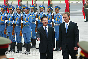 中新社北京七月二十一日电(记者张朔)中国总理温家宝今天在人民大会堂与来访的英国首相布莱尔举行会谈,双方对“一国两制”方针在香港的实施均给予积极评价。