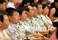 中国新闻界抗击非典宣传工作表彰会二十三日在北京人民大会堂举行,解放军记者参加会议。中新社记者:张宇