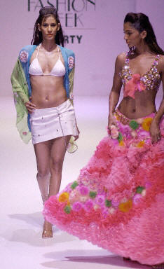 在孟买举行的印度时装周上模特展示时装设计师Mona和Pali的作品。本届时装周上展示了57位设计师的作品。