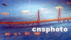 据悉,东海大桥是中国第一座真正意义上的跨海大桥,全长三十一公里,是上海洋山深水港工程的重要组成部分,全部工程由中国自行设计建设。主桥(V标段)是由两座一百四十点二米的“人”字型主塔组成的斜拉桥,四百二十米跨度,规模上同上海南浦大桥、卢浦大桥相近。