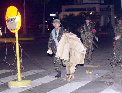 几小时以后,数十名武装军人于27日凌晨占据了马尼拉市金融区内的一座主要商业中心,并在周围安放炸药。