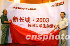 八月三日,由中国扶贫基金会主办的“新长城2003特困大学生关爱行动”在北京人民大会堂举行启动仪式,此次行动将有一万余名特困大学生得到捐助。中新社记者:盛佳鹏