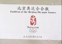 据介绍,2008年北京奥运会会徽有三大特点:第一、他体现了灿烂的中华文明;第二、体现奥林匹克更快、更高、更强的主旨和精神风貌;第三、既体现中华民族灿烂的文明,同时又展示了当代中国的动感和活力。