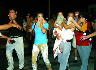 中新社西安八月六日电 今日零时十八分,位于西安市三桥镇建章路的一家小型造纸厂发生一起氯气泄漏事件,附近民众五十九人先后出现中毒症状,目前除一人病情稍重外,绝大多数中毒者已被确诊为轻微中毒,无生命危险。