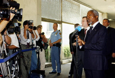 中新网8月21日电 联合国秘书长安南19日已回到纽约的联合国总部大楼召开会议,就联合国在伊拉克办公处所的保安安排重新进行详细的评估。