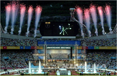 据新华网消息,继北京成功举办第二十一届世界大学生运动会,国际大体联在新世纪之初第二次选择了亚洲。经过两年不懈的努力,只有200多万人口的大邱将一幅精心绘制的青春画卷展现在了来宾面前。韩国总统卢武铉21日晚在这里宣布大运会开幕,标志着亚洲体育走向世界的步伐正在加快,而世界对亚洲的认同也正趋于一致。