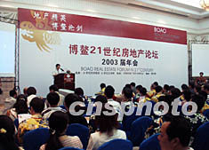 博鳌二十一世纪房地产论坛二00三届年会二十三日在海南博鳌隆重开幕,来自全国各地的房地产公司老总出席,论坛主题为“金融紧缩下的中国房地产。作者:莫成雄