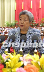 中共中央政治局委员、国务院副总理、国务院妇女儿童工作委员会主任吴仪出席了今天的闭幕式并讲话。