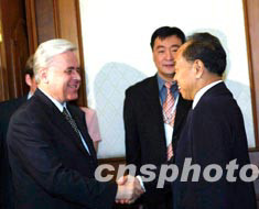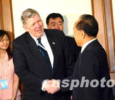李肇星外长与韩、日、朝、俄、美代表团团长及大使等一一握手、寒暄,大家很配合地摆出好的角度,让少数获得特许进来采访的记者们拍照。