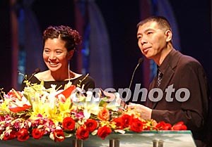 中国电影第九届华表奖三十日晚在北京北展剧场揭晓,香港明星袁咏仪、大陆著名导演冯小刚出任电影新人奖开奖嘉宾。中新社记者:武仲林