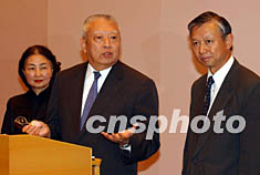 九月五日,香港行政长官董建华宣布撤回国安(立法条文)条例草案,强调无立法时间表,但希望早些完成。图为出席此间记者会的香港律政司司长梁爱诗(左)、保安局局长李少光(右)。作者:潘索菲