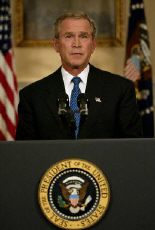 布什周日晚黄金时段在白宫发表十五分钟的电视讲话,阐述美国对伊政策。他没能回答民众关心的美军何时从伊拉克撤回?伊拉克的大规模杀伤性武器在何方?萨达姆下落何处等问题。相反,布什把伊拉克描述成反恐中央前线,并有不惜代价,不达目的不罢休之意。