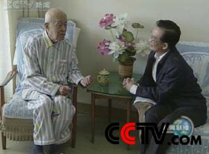 9时45分,温家宝来到解放军301医院,看望正在这里住院治疗的北京大学教授、93岁的季羡林先生。温馨明亮的病房里摆放着鲜花和贺诗。温家宝和季老亲切攀谈,关切地询问他的病情和治疗情况。温家宝说,季老学贯中西,研究领域甚广,在印度古代语言、佛教史、吐火罗文等学术领域都有很深造诣,在海内外享有盛誉,您渊博的学识和不断创新的治学精神,堪称学界楷模。当听说季老住院期间还写了一本散文集时,温家宝说,我很喜欢您的散文,是您的热心读者。季老今天谈兴甚浓,他说,21世纪的中国前程似锦,温家宝表示赞许。临别时,温家宝叮嘱季老要保重身体,祝愿他健康长寿。