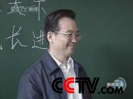 最后,温家宝来到著名的北京第二实验小学,到教研室看望教师,向他们祝贺节日。在五年级教研室里,他看到墙上写着“用百分之百的热情去解决百分之一的问题”,当即用笔记下来,并连声称赞这句话好。