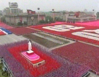 中新网9月9日电 朝鲜今天(9日)在平壤市中心的金日成广场举行阅兵式、群众游行和火炬游行等活动,庆祝共和国成立55周年。据央视国际报道,朝鲜劳动党总书记、国防委员会委员长、人民军最高司令官金正日观看了阅兵式和群众游行。