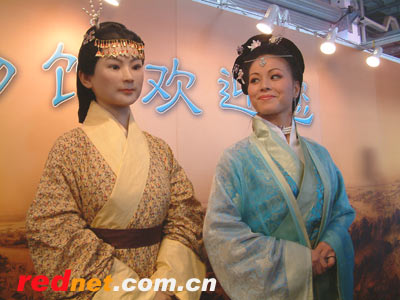 中新社长沙九月十二日电(丰冰余娅琳)“真还有点像呢。”“似乎也不是很像啊?”作为“二00三年中国湖南旅游节”重头戏之一的湖南旅游博览会今日下午刚一开幕,展会一隅便立即被围得水泄不通,一位长相俏丽的年轻女孩成为了众人关注的焦点,观众争相对这位传闻中西汉长沙国丞相夫人辛追的后裔评头论足。