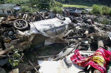 报道称,约有2万5千名韩国人被迫疏散,逃离住所,聚集在附近学校或是公共建筑躲避风雨。