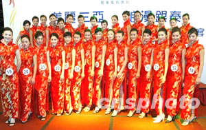 为期一周的第五十三届世界小姐中国总决赛十五日在海南三亚拉开帷幕,参赛选手身着大红旗袍集体亮相,展示具有中国传统韵味的美丽形象。中新社记者:毛建军