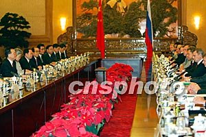 欢迎仪式后,中俄两国总理举行了正式会谈。