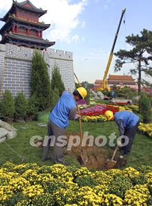 中新网9月25日电 天安门广场国庆花坛摆放工程将在今天完成。北京青年报报道说,中外游客将在天安门广场一睹“三峡大坝”、“万里长城”。
