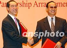 “内地与香港关于建立更紧密经贸关系的安排”附件签署仪式,九月二十九日在香港举行,商务部副部长安民和香港财政司司长唐英年,分别代表中央人民政府和香港特别行政区政府,签署“内地与香港关于建立更紧密经贸关系的安排”附件。中新社记者:钱兴强