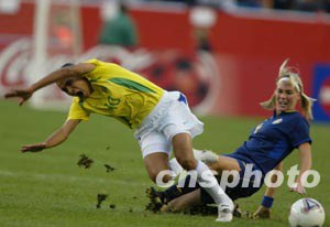 美国当地时间10月1日,女足世界杯两场四分之一比赛在美国东海岸的波士顿市吉列体育场举行,瑞典队(蓝)以2比1击败巴西队率先杀入四强。作者:刘占坤