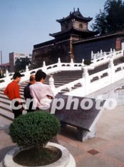 图:游人参观山西长治市上党门