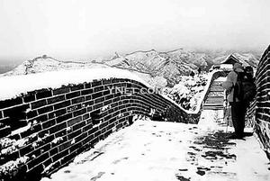 这是记者在延庆八达岭长城上所见到的美景。长城管理处的张先生告诉记者,前天下午5点左右,这里就开始飘起雪花,等到凌晨时分,雪越下越大,早晨起来发现,四周已是银装素裹,一片冰雪世界。当时,“大雪山”和雪长城完全映入眼帘,远处的山峦白雪覆顶、云雾横腰。而令人惊奇的是,今年长城下雪过后,天气立时放晴,使得长城出现了蓝天、白云、长城、红叶、雾霭、雪山、雾、雨帘共存的奇观。据此间气象专业人士介绍,十月秋雪在八达岭虽不常见,却也并非绝无仅有,仅2001年和2002年就曾分别于10月3日、10月25日各有一场。但昨天奇就奇在雪后骤晴,使阳光下七种自然景物和长城这一人文景观交相辉映。