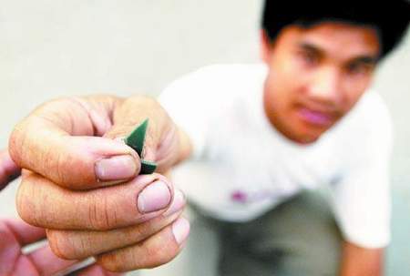 曾先生说,他在惊吓过后才觉得全身麻痛,仔细检查才发现自己多处挂彩。一些小碎片嵌进肌肉里,身上绽开多道血痕。他从右腿伤口拔出一块指甲盖大小的硬质墨绿色碎片,告诉记者这就是爆炸的不明物体。