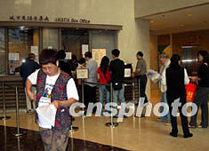 中国首名航天员杨利伟 31日到香港访问六日。29日6时开始,在大会堂、科学馆等18个地点,免费派发6万张航天展入场券,每人限取两张。图为清晨6时许位于葵青剧院已有市民排队轮候。作者:谭达明