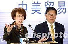 博鳌亚洲论坛2003年会十一月三日举行中美贸易关系:挑战与合作主题午餐会,昔日中美贸易谈判对手美国前贸易代表巴舍夫斯基与现任博鳌亚洲论坛秘书长的龙永图再度相遇,以论坛的形式共同探讨中美贸易关系。中新社记者:毛建军
