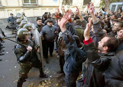 图:格鲁吉亚反对派冲破警察防线冲进议会大楼