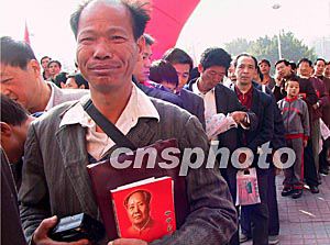 十二月十三日,数以千计的福建读者一大早在福州市区一图书城前排起长队,等候伟人毛泽东嫡孙毛新宇为新书《爷爷毛泽东》签名售书。今年十二月二十六日是毛泽东诞辰一百一十周年的日子。