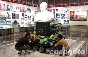 2003年12月26日是毛泽东诞辰110周年,位于北京天安门广场上的毛主席纪念堂将举办多项活动隆重纪念,纪念堂中的“毛泽东展室”经过精心布置准备接待参观者。中新社记者:任晨鸣