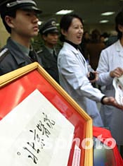 图:毛主席为北京医院题写院名的原件展出