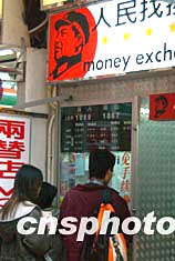 十二月二十六日是中国已故毛泽东主席诞辰110周年纪念日,在香港繁华的铜锣湾街头,一家两替店悬挂的毛泽东像显得引人注目。中新社记者:钱兴强