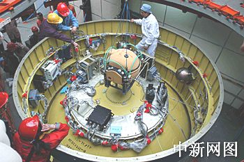 图:"长征二号丙"改进型运载火箭二级、上面级对接平台安装