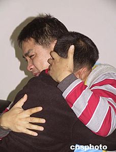 分别近两个月的一家人时而望着对方,时而抱头痛哭。