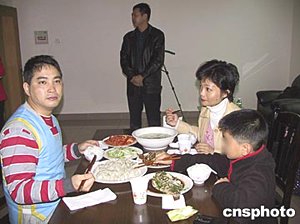因涉嫌在海南从事间谍活动被拘押的台湾人宋孝濂,一月二十日在有关部门的安排下与前来探视的妻子和儿子吃团圆年饭。作者:王辛莉