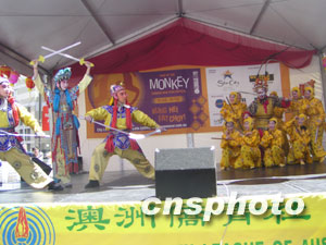 澳洲侨青社24日在悉尼中国城德信街举行盛大的新春联欢会,数以万计的华人华侨和各界人士出席了开幕仪式,并观看了精彩的文艺节目。此次新春联欢会一连两日,由北京艺术团、澳洲侨青社、悉尼西区华人协会以及黄河合唱团的艺人献演丰富多彩的歌舞和音乐节目,令悉尼各界人士耳目一新。中新社记者刘雨生摄