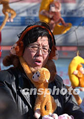 春节期间,北京各大庙会热闹非凡,一名卖猴玩具的小贩正忙碌着在庙会上淘金。“拜神、购物、娱乐”是人们逛庙会的主要活动,庙会上旺盛的人气带动了独特的庙会经济。中新社记者:张炜