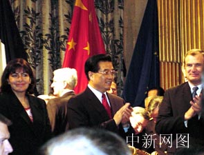 巴黎市政府二十八日上午举行隆重仪式,欢迎中国国家主席胡锦涛访法。巴黎市官员、议员、各国驻法使节和旅法华侨华人参加了欢迎仪式。蔚中摄