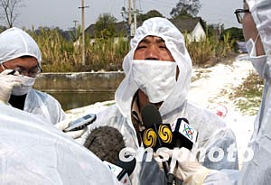 晚上十九点,采访团记者还采访了广西壮族自治区重大动物疫情防治指挥部办公室主任闭强。在听取了闭强的介绍后,记者们还对禽流感疫情的开端、农民补偿等问题进行提问。