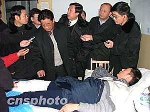 在伤者吕建国的床前,省领导关切地询问了他的伤情,并请他安心养伤。省领导叮嘱医院方面,要选派最好的医护人员、用最好的药品,全力以赴,不惜一切代价抢救伤员。技术力量和药品方面如有缺乏,省里立即调配。